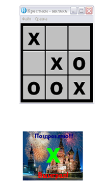 Если же поле пусто выполняется заполнение поля символом «X» и открывается таблица для проверки из базы знаний соответствующих ходов.