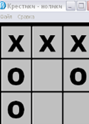 Результат второй попытки, после того как нам не дали ходить как раньше, мы ставим крестики по первой строке:
