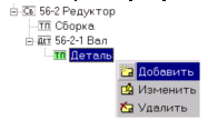 Далее надо выбрать подгруппу «Деталь», ответвляющуюся от этой группы и нажать правую кнопку мыши. Из появившегося меню надо выбрать пункт «Добавить».