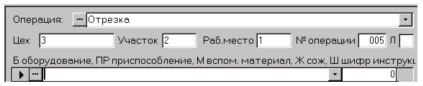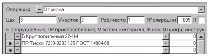 Далее можно ввести номер цеха, участка и рабочего места, на котором будет выполняться операция «Отрезка», например: