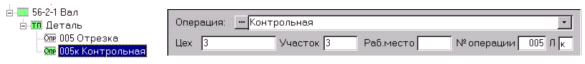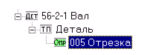 Перевод курсора в поле «Б оборудование, ПР приспособление, М вспом. материал…» вызывает появление пункта «005 Отрезка» в дереве классификации КТП.