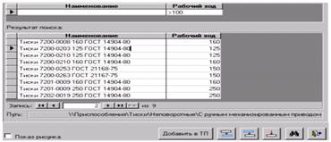 этой кнопки выдается форма запроса критериев поиска в полях параметров приспособлений типа «Тиски».