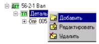 Для добавления следующей операции, необходимо в дереве классификации поставить курсор на группу «Деталь», нажать правую кнопку на мыши и из появившегося меню выбрать пункт «Добавить». Для заполнения операции необходимо повторить действия, описанные выше.
