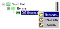 Для добавления перехода необходимо в дереве классификации КТП поставить курсор на операцию, например, «005 Отрезка» и нажать правую кнопку мыши. Из появившегося меню надо выбрать пункт «Добавить».