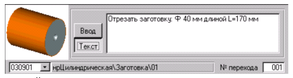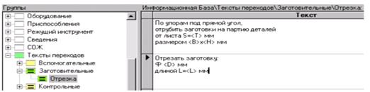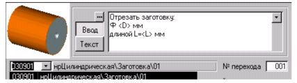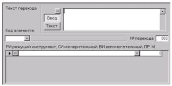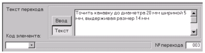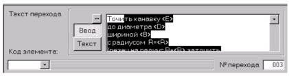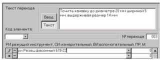 Кроме заполнения переходов и операций посредством выбора их элементов из Информационной базы, имеется возможность прямого ввода с клавиатуры нового оснащения, наименований операций, текстов переходов. Вводимые с клавиатуры данные могут запоминаться в ИБ и использоваться в дальнейшем.