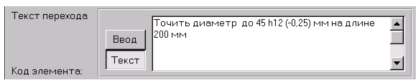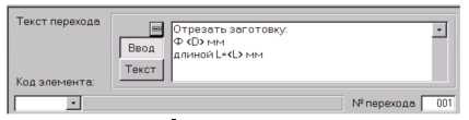 Справа в окне откроется форма описания перехода. Ввод текста перехода производится при нажатой кнопке [Ввод].