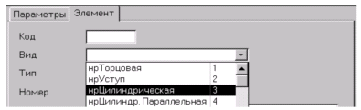 Код элемента можно вводить и с клавиатуры, прямо в поле кода. Введенный код добавляется к списку кодов элементов детали, но задать значения параметров элемента можно только перейдя в группу «Деталь».