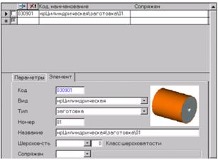В рассматриваемом примере ещё не было введено ни одного элемента, поэтому их список элементов пуст. Для ввода кода заготовки необходимо в окне дерева классификации выбрать группу «Деталь».