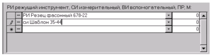 Поле «РИ режущий инструмент, СИ Измерительный…» заполняется строками из Информационной базы. Выбор строк из ИБ проводится с использованием выпадающего списка или через открытие окна ИБ. Приемы выбора инструментов из ИБ аналогичны приемам, описанным в предыдущем разделе при вводе оборудования и приспособления в операцию.