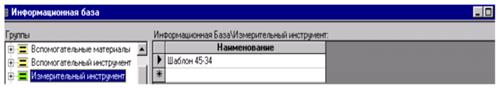 Вносимое в ТП с клавиатуры оснащение, наименования операций, тексты инструкций и переходов при добавлении их в Информационную базу попадают в корневые группы ИБ в соответствии с типом.