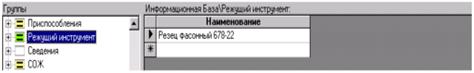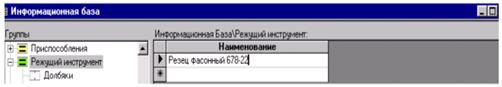 Для переноса в эту группу уже имеющейся строки резца из группы «Режущий инструмент» необходимо поставить на эту строку курсор и выбрать