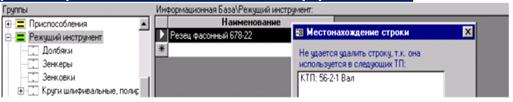 Выбор кнопки [Да] вызовет добавление наименования резца в ИБ и перевод курсора в следующую строку оснащения.