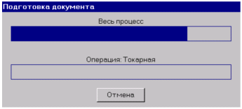 Процесс формирования документа может занять от нескольких секунд до нескольких минут. Ход процесса формирования документа отображается на индикаторе. При необходимости процесс формирования документа можно прервать выбором кнопки [Отмена].