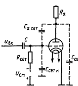 В режиме отсечки участки схемы, к которым подключены сетка и анод лампы (рис. 7.2), представляются разомкнутыми. В открытом состоянии анодная цепь заменяется эквивалентным резистором, сеточная цепь также представляется эквивалентным резистором.