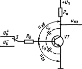 | Рис. 7.3. Схема транзисторного ключа с общим эмиттером |