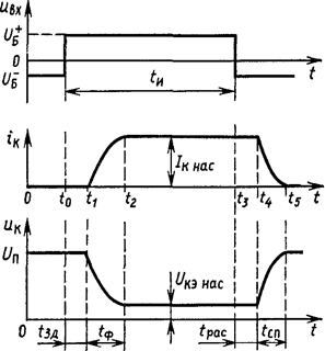 Рассмотрим процесс включения транзисторного ключа при условии, что в момент времени /о на его входе напряжение скачком изменяется от Uб