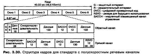 Формирование TDMA-кадра - структура TDMA-кадров в прямом и обратном каналах, для стандарта с полу скоростным речевым каналом.