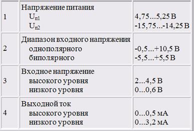 Табл. 1. Характеристики микросхемы.