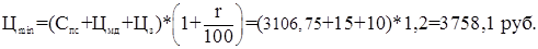 Минимальная цена с учетом НДС рассчитывается по формуле (2)