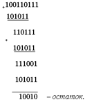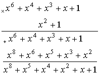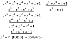 При построении и декодировании циклических кодов в результате деления многочленов обычно необходимо иметь не частное, а остаток от деления. Поэтому рекомендуется более простой способ деления, используя не многочлены, а только его коэффициенты (вариант 2 в примере).