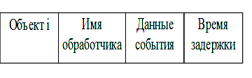 Ниже рассматривается вариант реализации механизма управления событиями для языка реализации C#, входящий в состав VisualStudio.Net. На рисунке4 приведена структура данных, для задания информации об обработчике некоторого события.