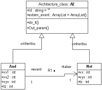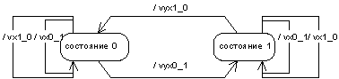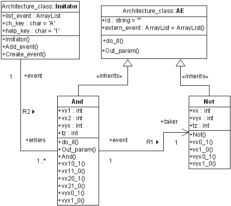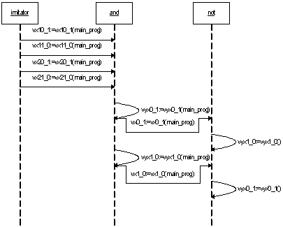 На диаграмме отражается также взаимосвязь событий – изменение выходного сигнала какого-либо объекта класса And приведет к возникновению события, связанного с изменением входного сигнала соответствующего объекта класса Not (связки событий vyx 0_1(объект and ) + vx 0_1(объект not ) и vyx 1_0(объект and ) + vx 1_0(объект not ) ).