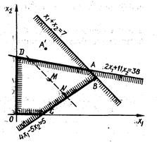 Вирішимо задачу геометрично (мал. 1). Область пошуку екстремума – багатокутник ODABC,