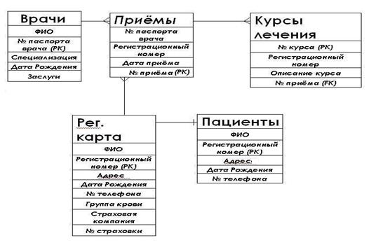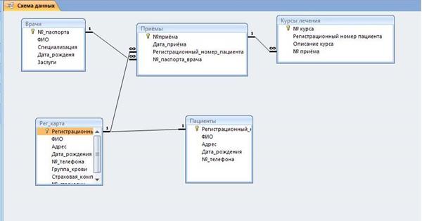 Администрация больницы заказала разработку информационной системы для отдела приема пациентов и медицинского секретариата. Новая система предназначена для обработки данных о врачах, пациентах, приеме пациентов и лечении. Система должна выдавать отчеты по запросу врачей или администрации. Во время предпроектного обследования составлено следующее описание деятельности рассматриваемых подразделений.