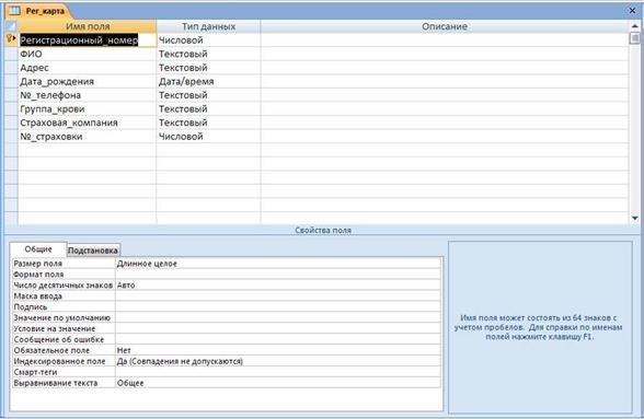 Рисунок 8 - Таблица: Регистрационная карта