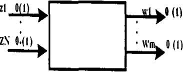 Построенный таким образом автомат S есть результат композиции элементарных автоматов S1 ,...,Sk . В отличие от абстрактного C-автомата, имеющего один входной и два выходных канала, на которые поступают сигналы во входном и выходных алфавитах автомата, структурный автомат имеет входные и выходные каналы, на которых появляются сигналы в структурном алфавите автомата. В случае двоичного алфавита каждый входной и выходные сигналы абстрактного автомата могут быть закодированы векторами различной длины соответственно, компоненты которых принимают два значения - нуль и единицу.