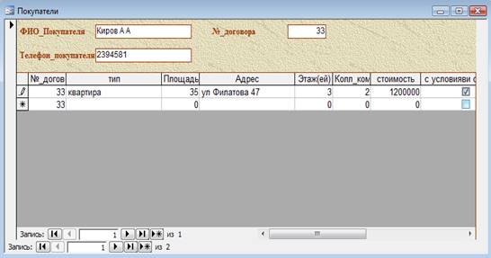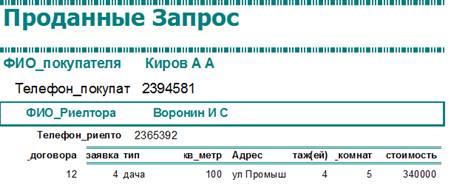 Запрос на копирование – выполняет копирование всех полей проданного имущества из таб. «Инфо» в таб. «Проданные».