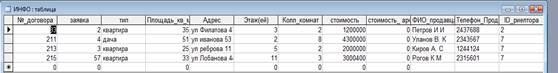FROM Риелторы INNER JOIN ИНФО ON Риелторы. ID_риелтора = ИНФО.ID риелтора;