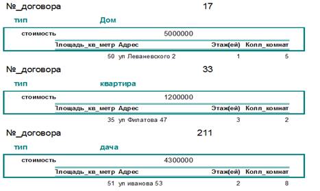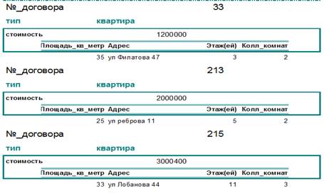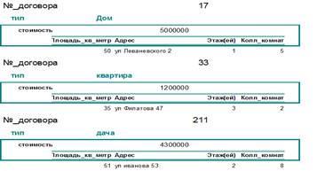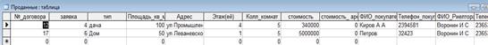 Рисунок 16 (результат запроса «имущество за риелтором»)