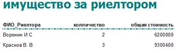 Запрос «имущество за риелтором» - выводит информацию о количестве имущества закрепленного за каждым риелтором.