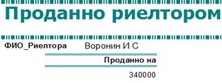 Продано риелтором – выводит сумму проданного имущества каждым риелтором.