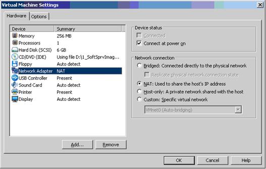 1. ЗапуститьРедактор конфигурации (менюCommands | Edit Virtual Machine Settings ) (рис.1.).