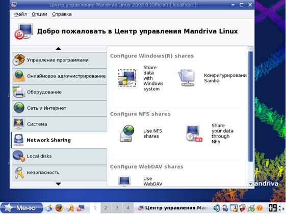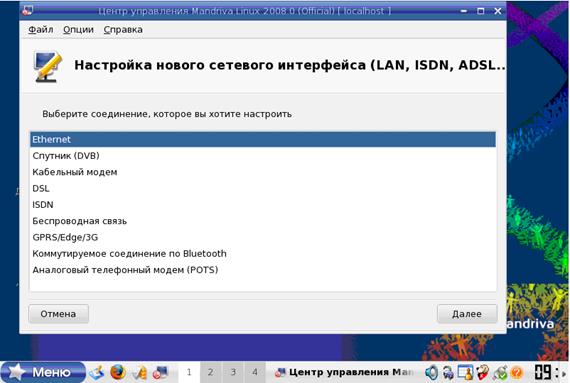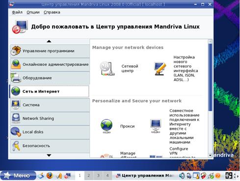 1. Через Меню войти в Центр Управления Mandriva Linux 2008 на вкладку “Сеть и