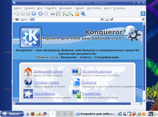 6. По завершении настроек, запустить файловый менеджер Konqueror , открыть вкладку