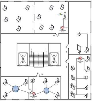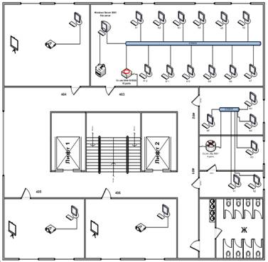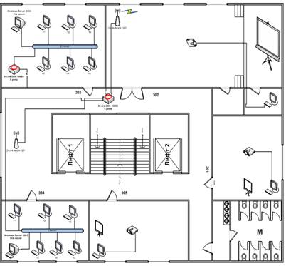 Для построения сети в учебном заведении выбираем двухжильный кабель – витая пара, так как показатели стоимости монтажа и оборудования, по сравнению с другими видами кабелями, такими как коаксиальный кабель оптоволоконные линии, более выгодны, требуют меньших затрат, что является немаловажным фактором. Кабель из витой (скрученной пары) пары является на сегодняшний день стандартом для ЛВС. Витая пара обеспечивает лучшую производительность. Однако, вероятно, самым большим преимуществом витой пары является то, что она уже используется бесчисленным количеством телефонных систем по всему миру. Кабели на основе витой пары применяемые в структурированных кабельных сетях, имеют до четырех пар изолированных медных проводов в одной металлической оплетке или без нее (различают неэкранированный и экранированный кабели). Каждая пара проводов для защиты от переходногозатухания, вызванного электромагнитными помехами от соседних пар и внешних источников, скручивается с различным шагом - количеством витков на дюйм. Согласно стандартам, провод делится на несколько категорий по своей "пропускной способности". Мы выбираем кабель пятой категории, который используется для передачи данных со скорость до 100 Мбит в секунду включительно.