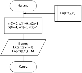Схема алгоритма модуля f ( x , LX 1, LX 2)