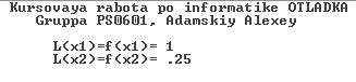 PRINT "Gruppa PS0601, Adamskiy Alexey"