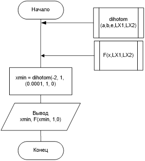 - модуль поиска минимума функции F(x) численным методом, использующий L(x1 ), L(x2 ) как коэффициенты при x2 и x