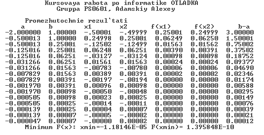 PRINT "Kursovaya rabota po informatike OTLADKA"