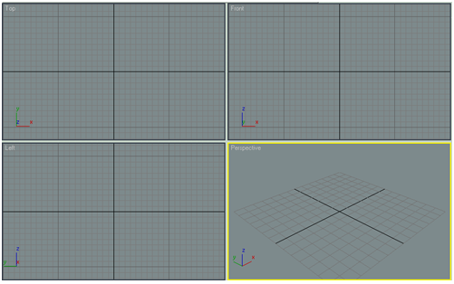 Рис. 2.4. Сетка отключена во всех окнах проекций, кроме Perspective