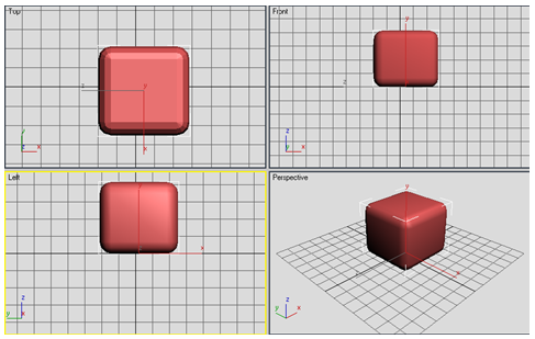 Когда дело касается работы с объектами, программа 3ds max должна знать, какое окно проекции вы хотите сделать активным. После щелчка левой или правой кнопкой мыши в одном из окон проекций оно становится рабочим. Когда окно проекции активно, оно обведено цветной рамкой.
