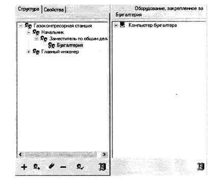 Следующая задача — ведение структуры предприятия. Структуру предприятия целесообразно представить в виде дерева подчиненных подразделений. Кроме того, в дереве должны присутствовать и сотрудники. Изменение подчиненности подразделений и сотрудников должно выполняться интерактивно — при помощи процедуры Drag-and-Drop. Формирование подробной структуры предприятия необходимо для выяснения принадлежности компьютера (и его элементов) к тому или иному подразделению и сотруднику.