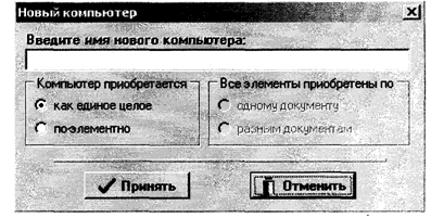 в) компьютер приобретается как совокупность элементов, каждый из которых или часть из которых имеют собственные документы покупки, т.е. были куплены в разное время, у разных поставщиков, по разным документам.