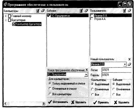 и) ведение списка программного обеспечения, установленного на компьютерах, а также пользователей (с их логинами и паролями), работающих с этим программным обеспечением;