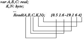 Список ввода - представляет собой перечисленные через запятую имена переменных, которые в результате ввода получают определенные значения.