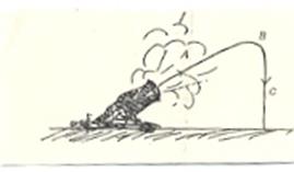 Представления о траектории движения артиллерийских снарядов в те времена были довольно забавными. Считалось, что траектория эта состоит из трех участков: А - насильственного движения, В - смешанного движения и С - естественного движения, при котором ядро падает на солдат противника сверху (рис. 12.2).